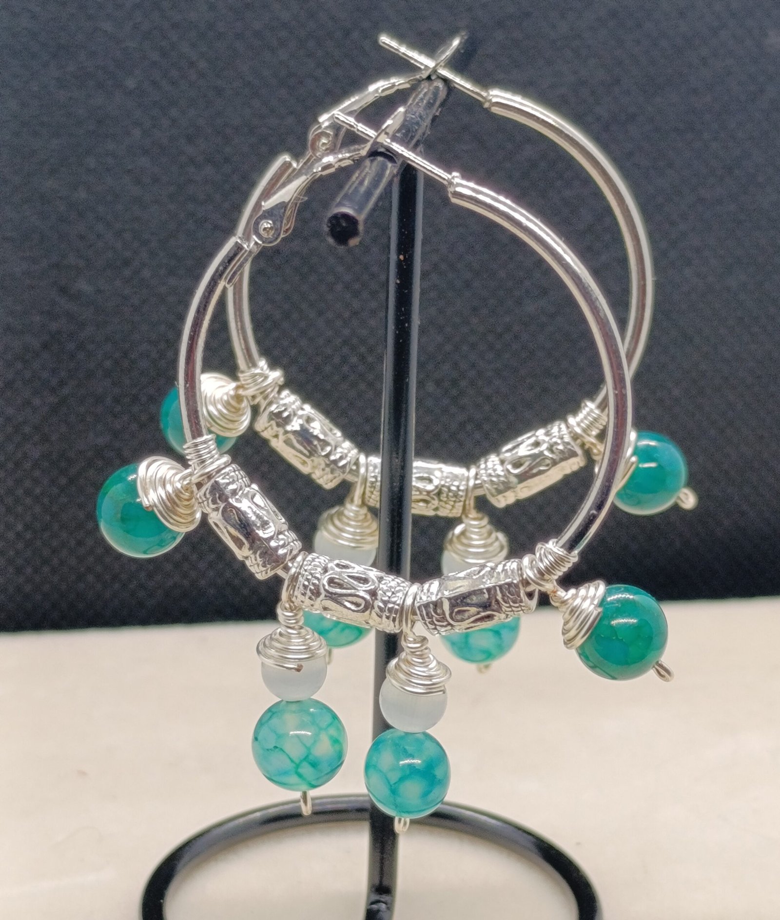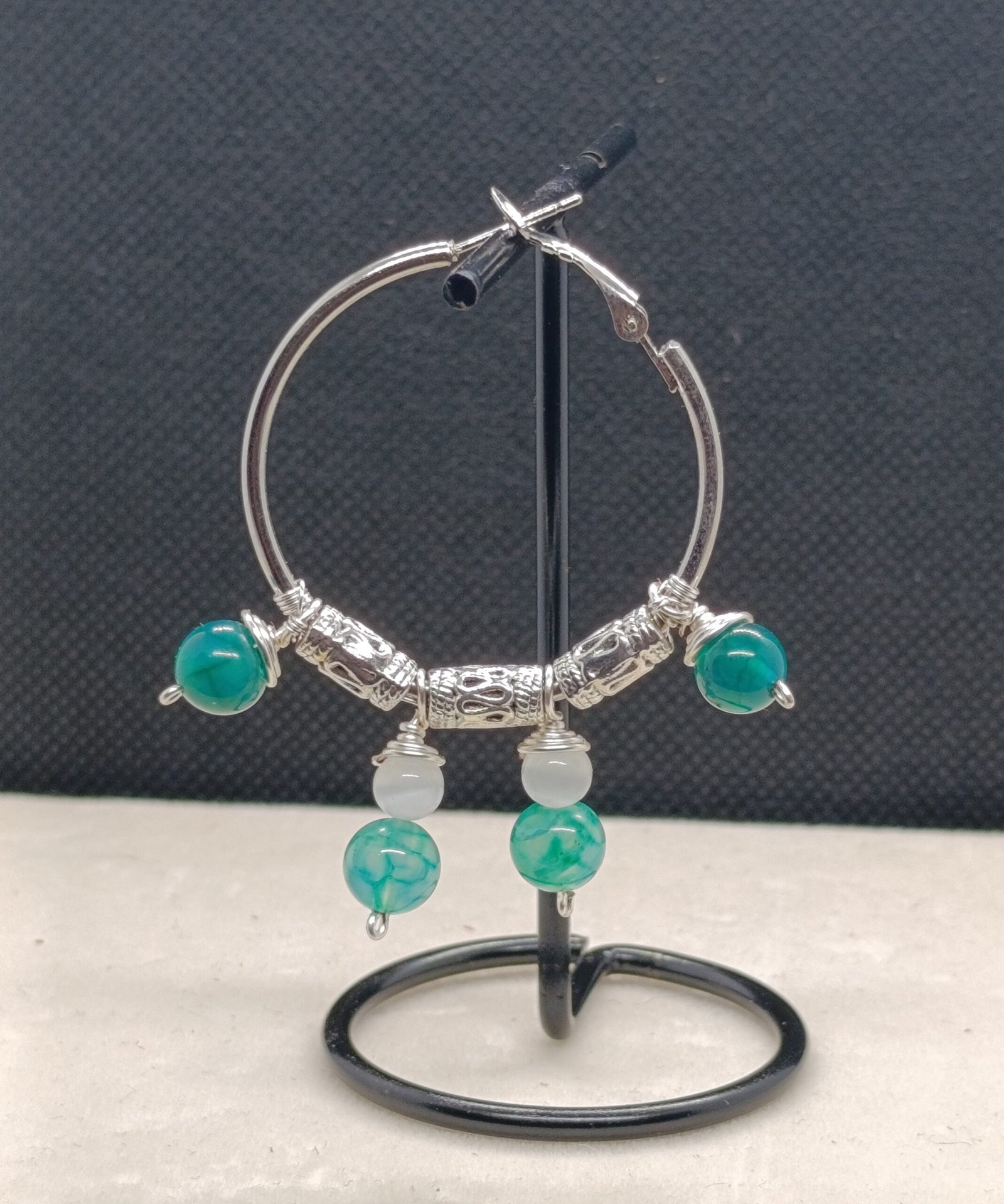 Aros Piel de Dragón hechos a mano con cuentas de piel de dragón y ojo de gato. El aro es de acero inoxidable.
