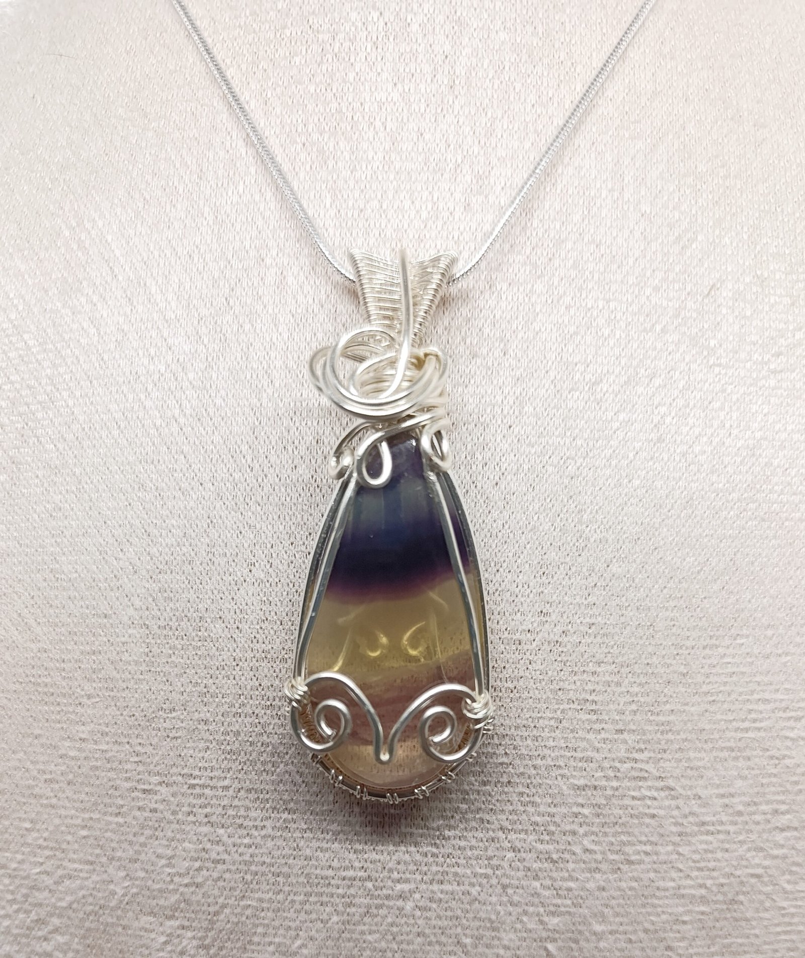 Colgante Fluorita Bandeada hecho a mano con cabujon de fluorita natural.