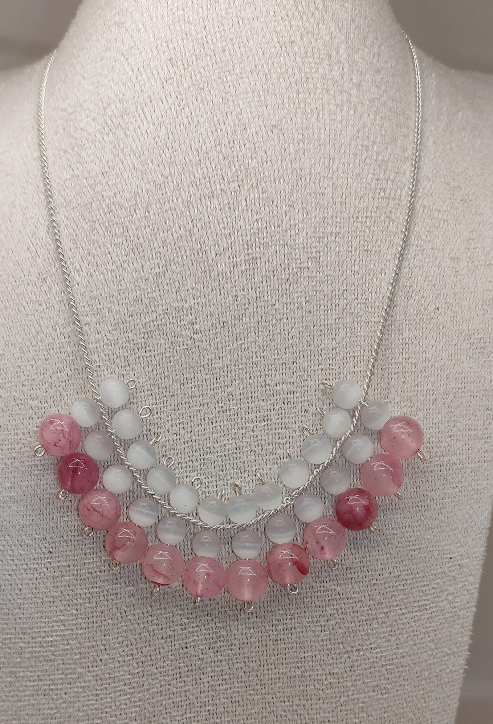 Collar Sense 5 hecho a mano con cuentas de jaspe imperial y ojo de gato.
