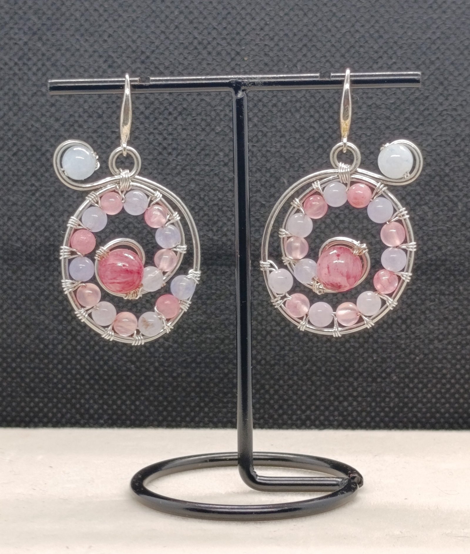 Pendientes Aguajaspe hecho a mano con cuentas de aguamarina y jaspe imperial rosa, los enganches son de plata.