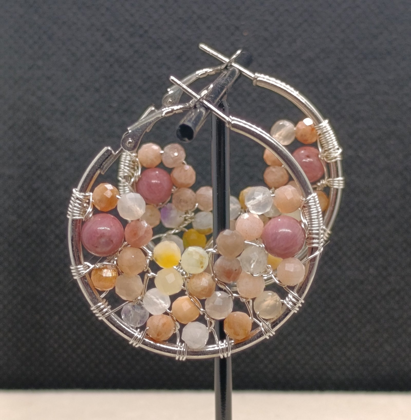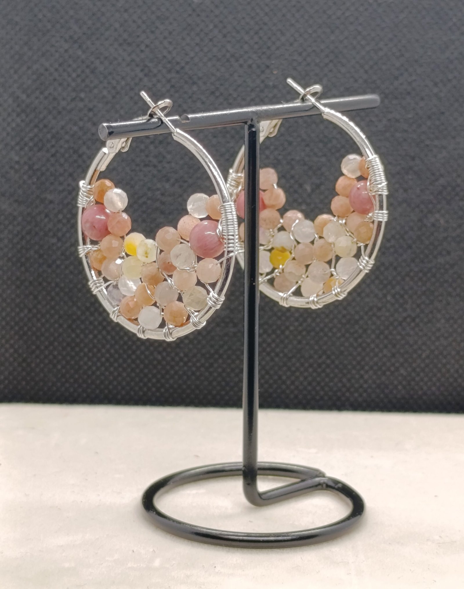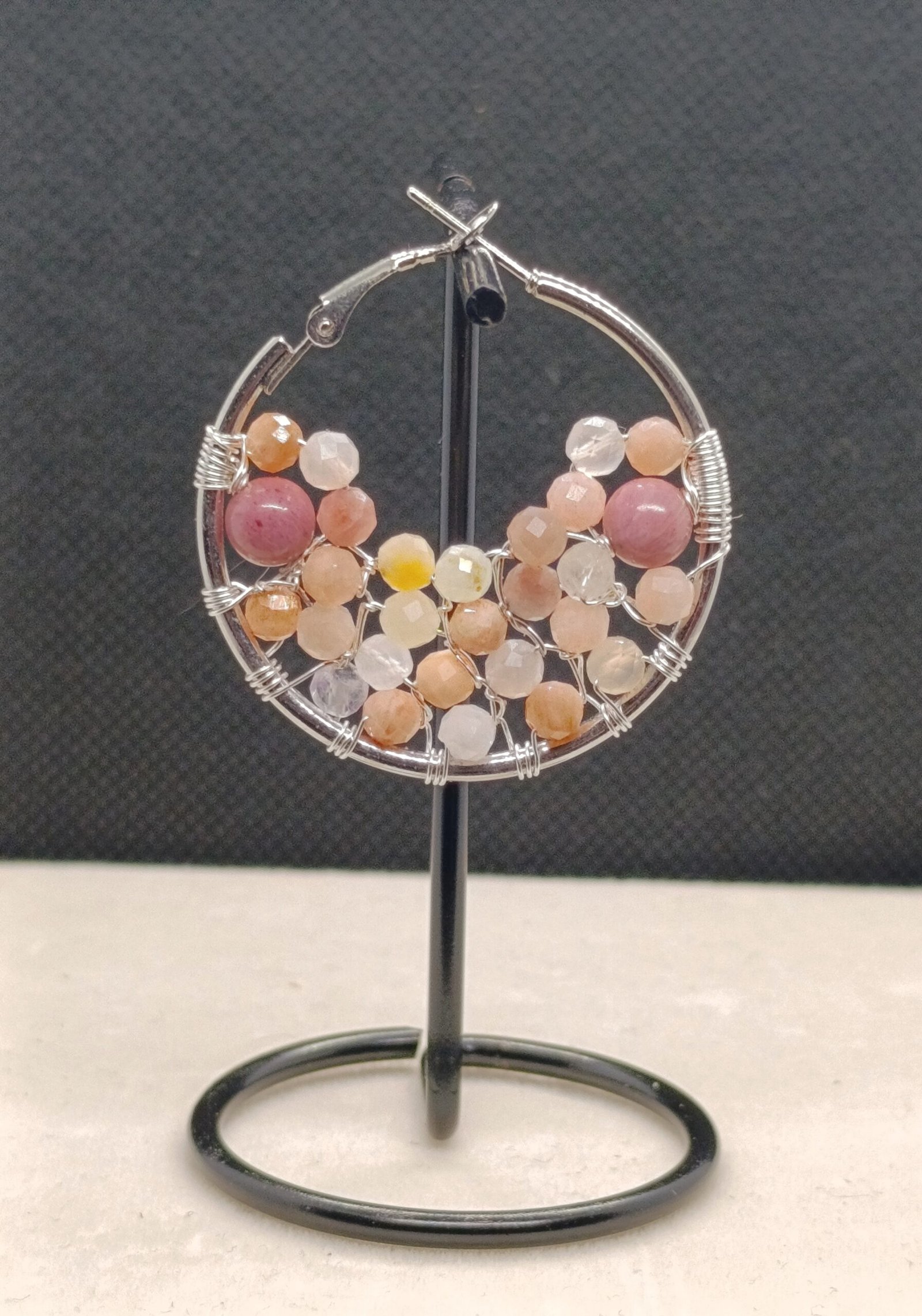 Pendientes Mar Rosado hechos a mano con cuentas naturales, cuenta principal rodonita, aros de acero inoxidable,