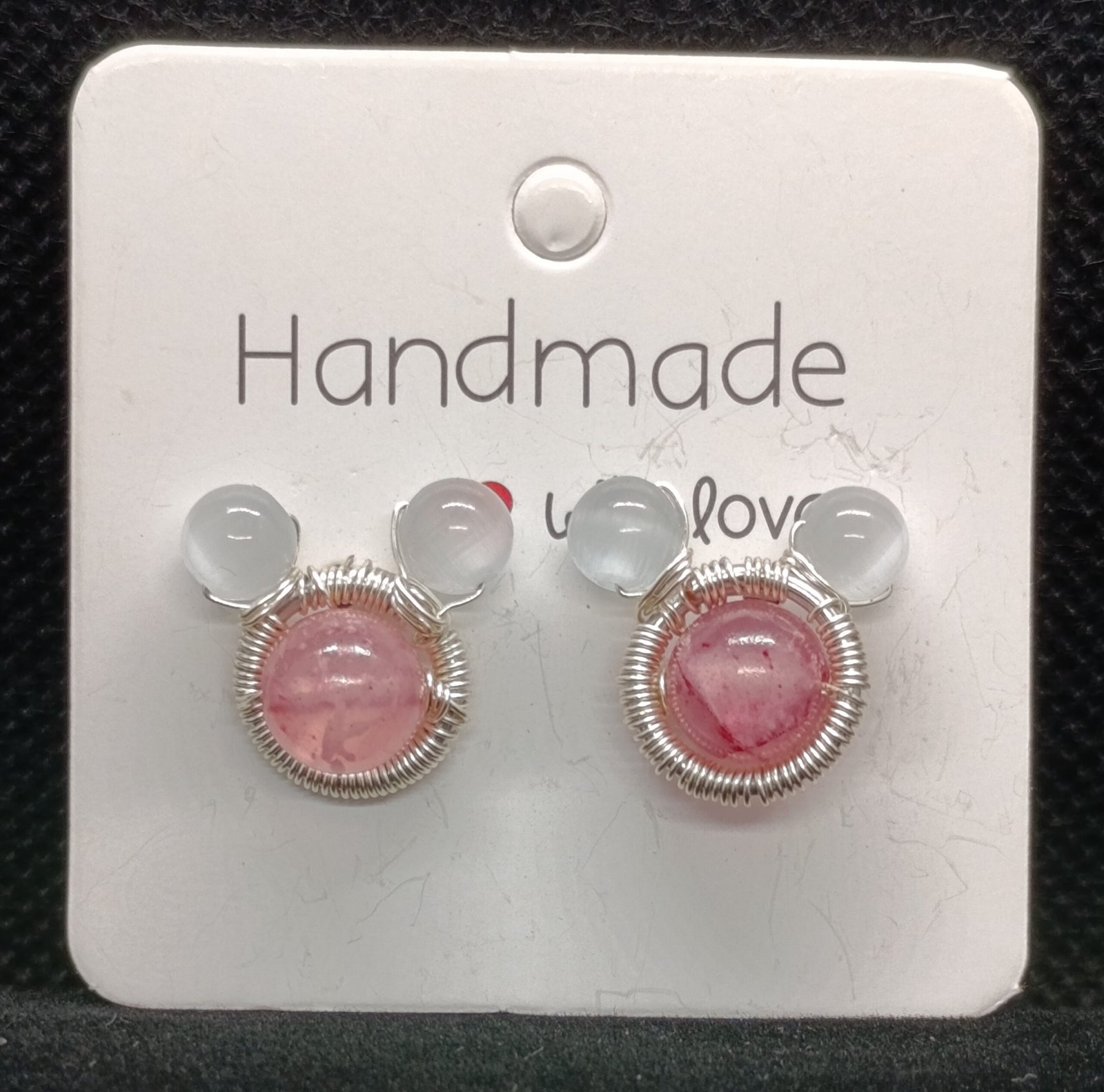 Pendientes Ratoncito Rosa hecho a mano con cuentas de jaspe imperial rosa.