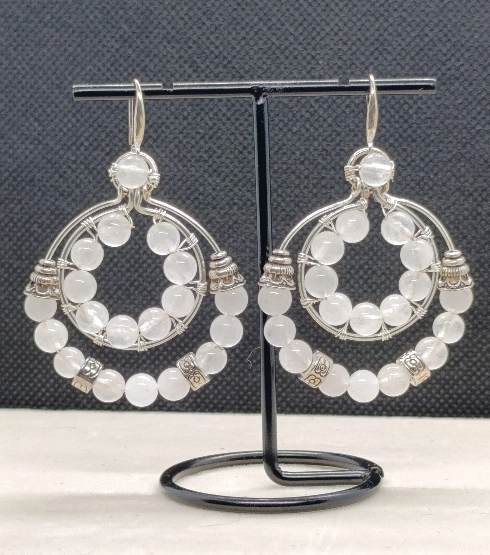 Pendientes Tribal 2 hechos a mano con cuentas de jade blanco, los engaches son de plata.