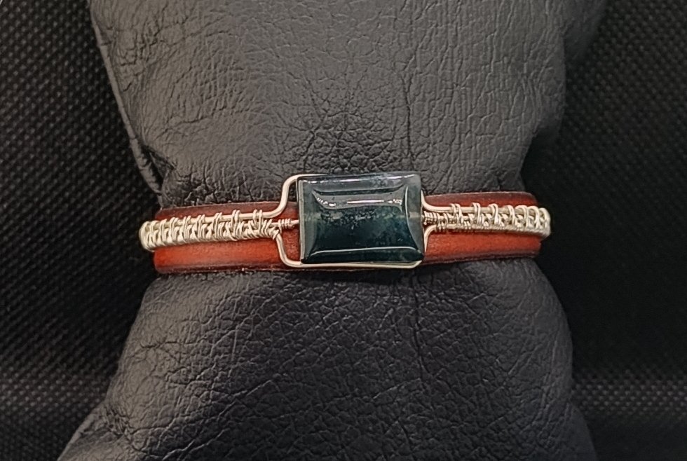Pulsera hecha a mano con agata musgo y cuero