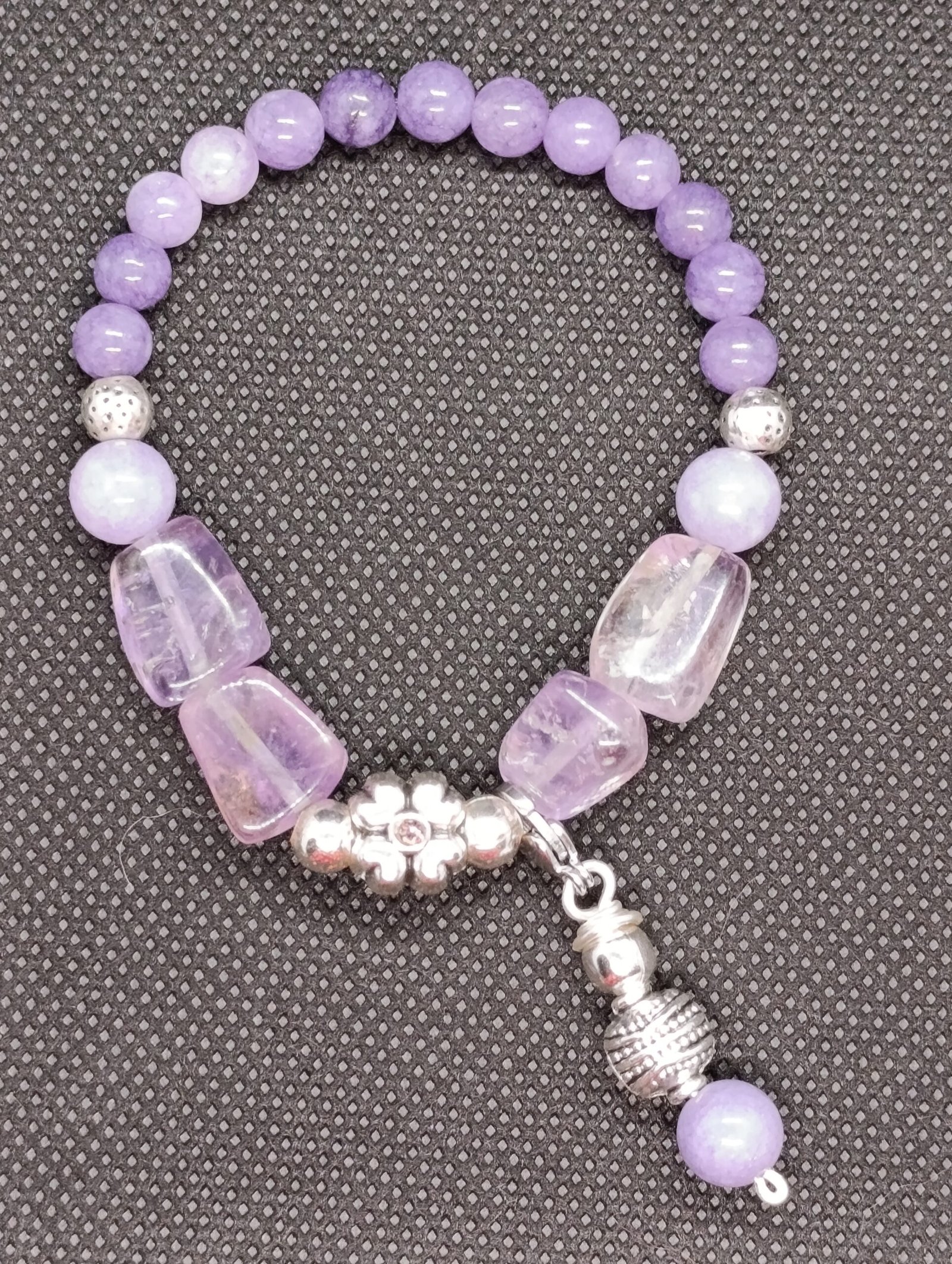 Pulsera Angelita hecha a mano con cuentas de angelita morada y amatista.