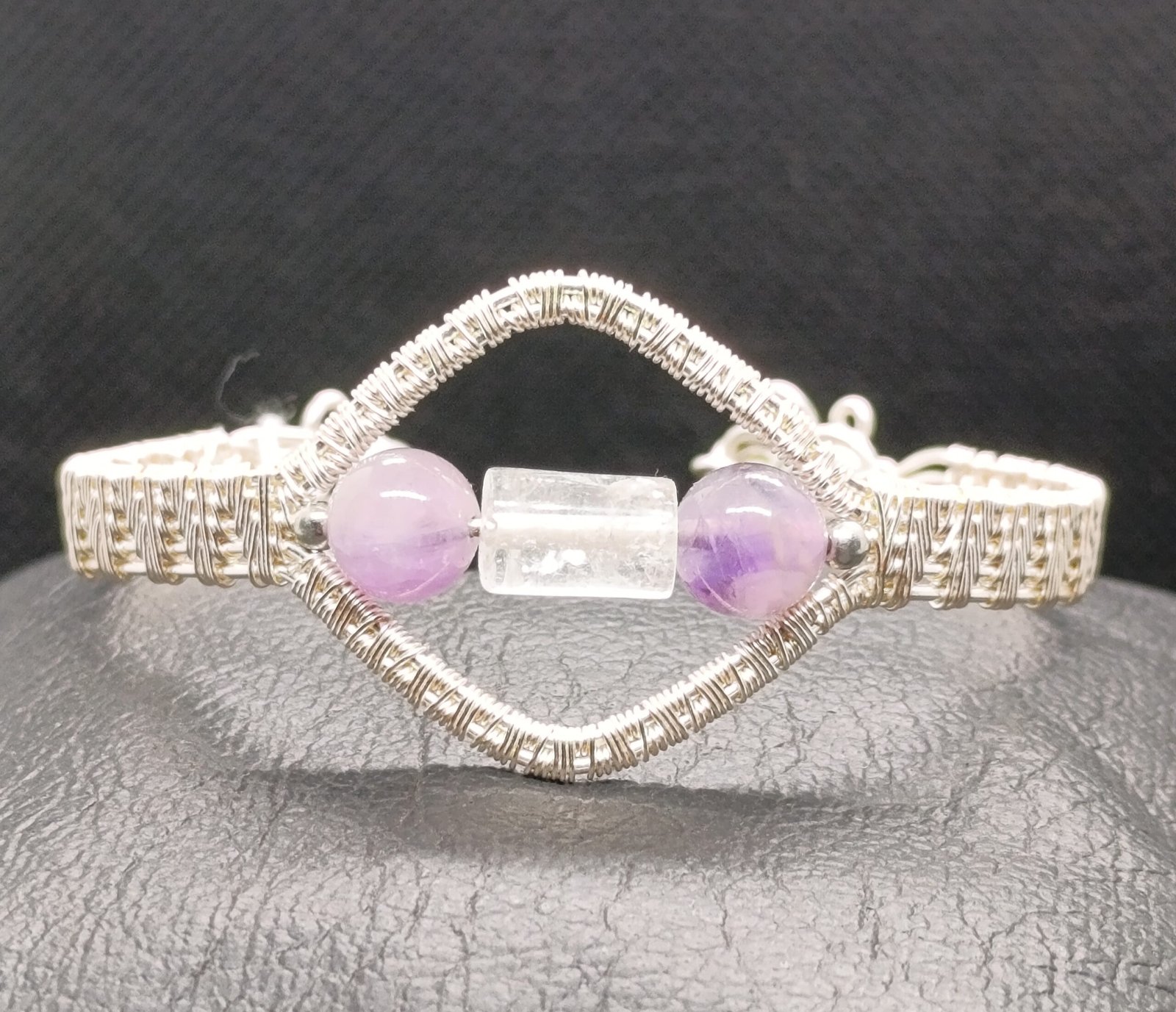 + Free ShippingPulsera Cuarz 3 hecha a mano con cuenta de cuarzo y amatista.