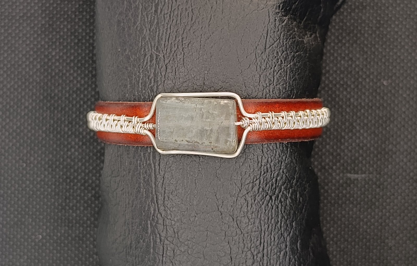 Pulsera hecha a mano con cuenta de labradorita y cuero