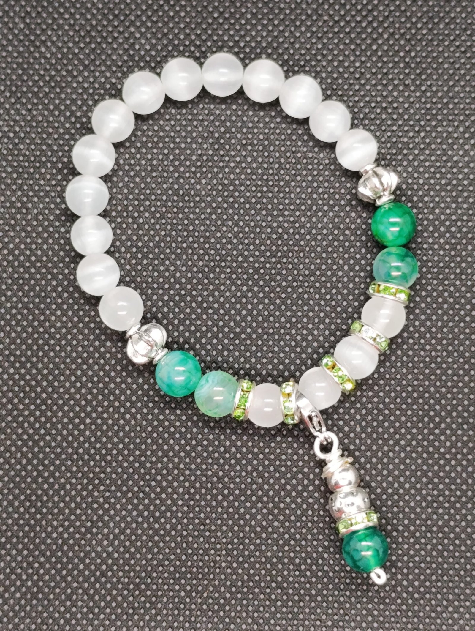 Pulsera Piel Dragón hecha a mano con cuentas de piel de dragón y ojo de gato.