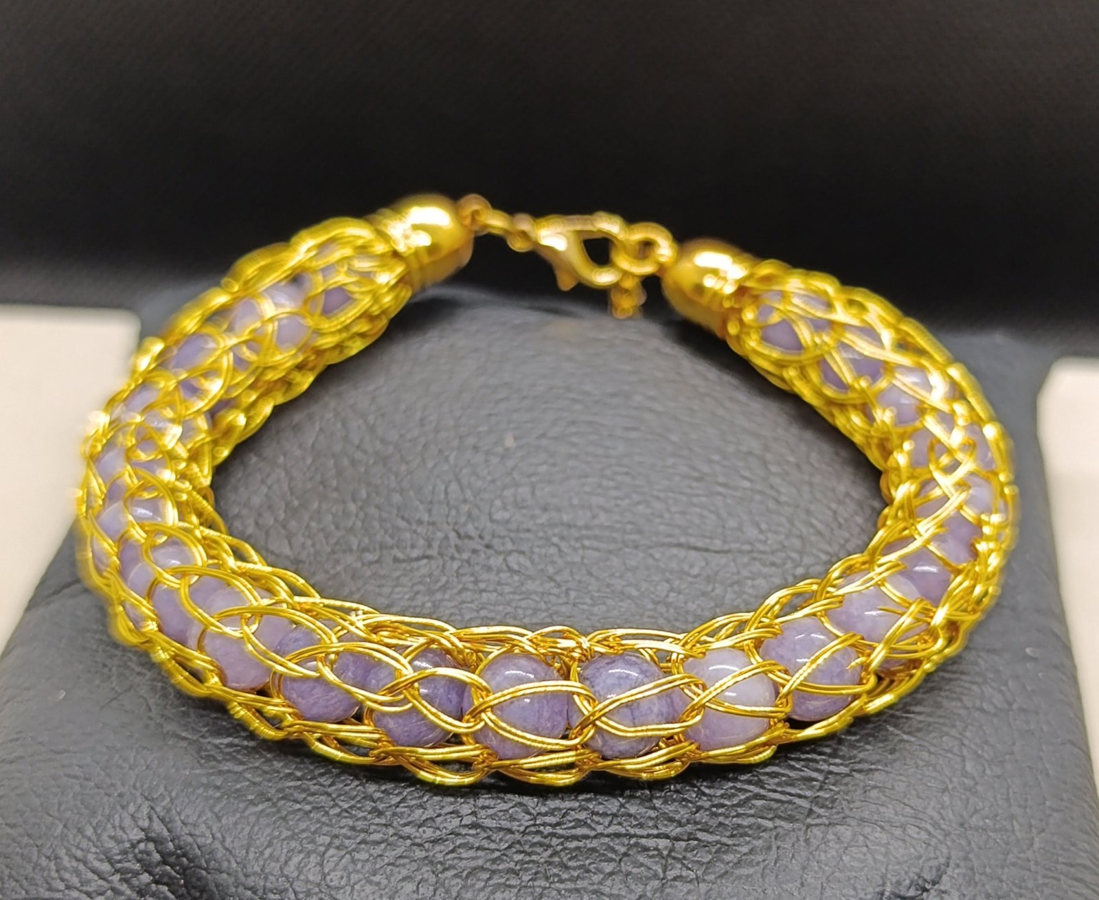 Pulsera Viky Angelita hecho a mano con cuentas de angelita morada natural con el cosido vikingo.